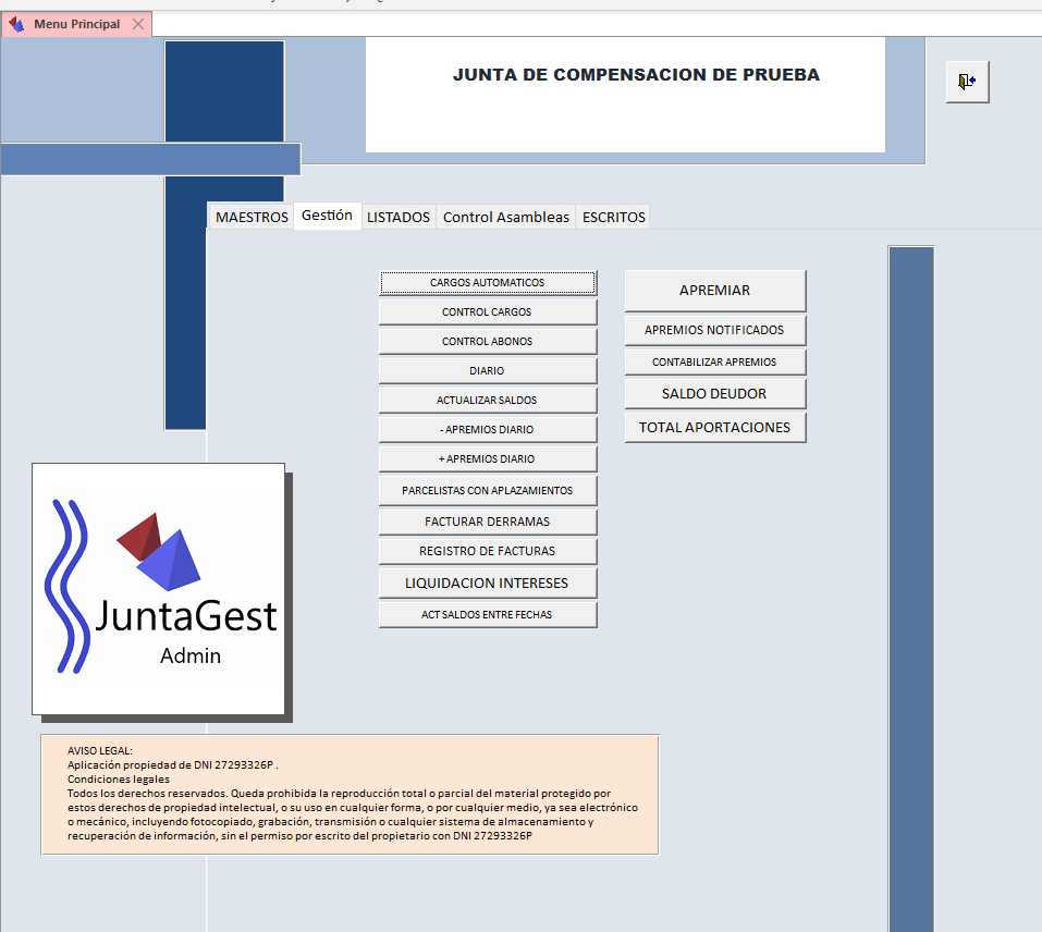 Desde este menú podremos realizar las gestiones económicas de la Junta.